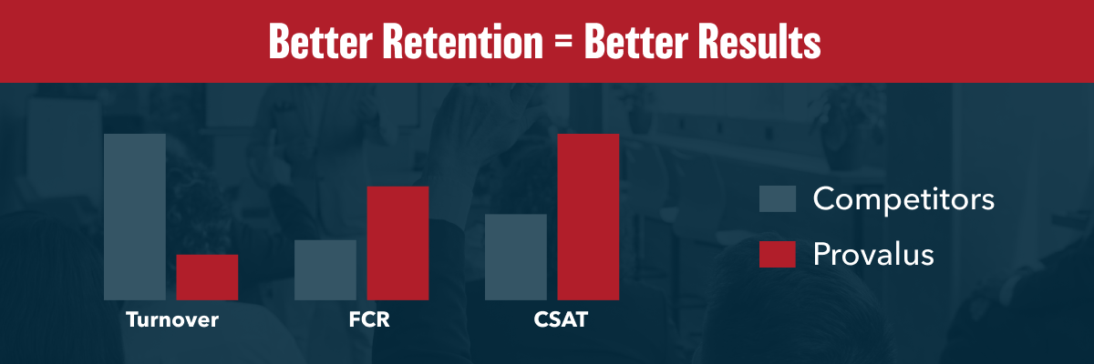 - Rural US-Based: Provalus, a rural onshore outsourcing provider, typically sees contact center attrition at below 10%, significantly lower than offshore averages.